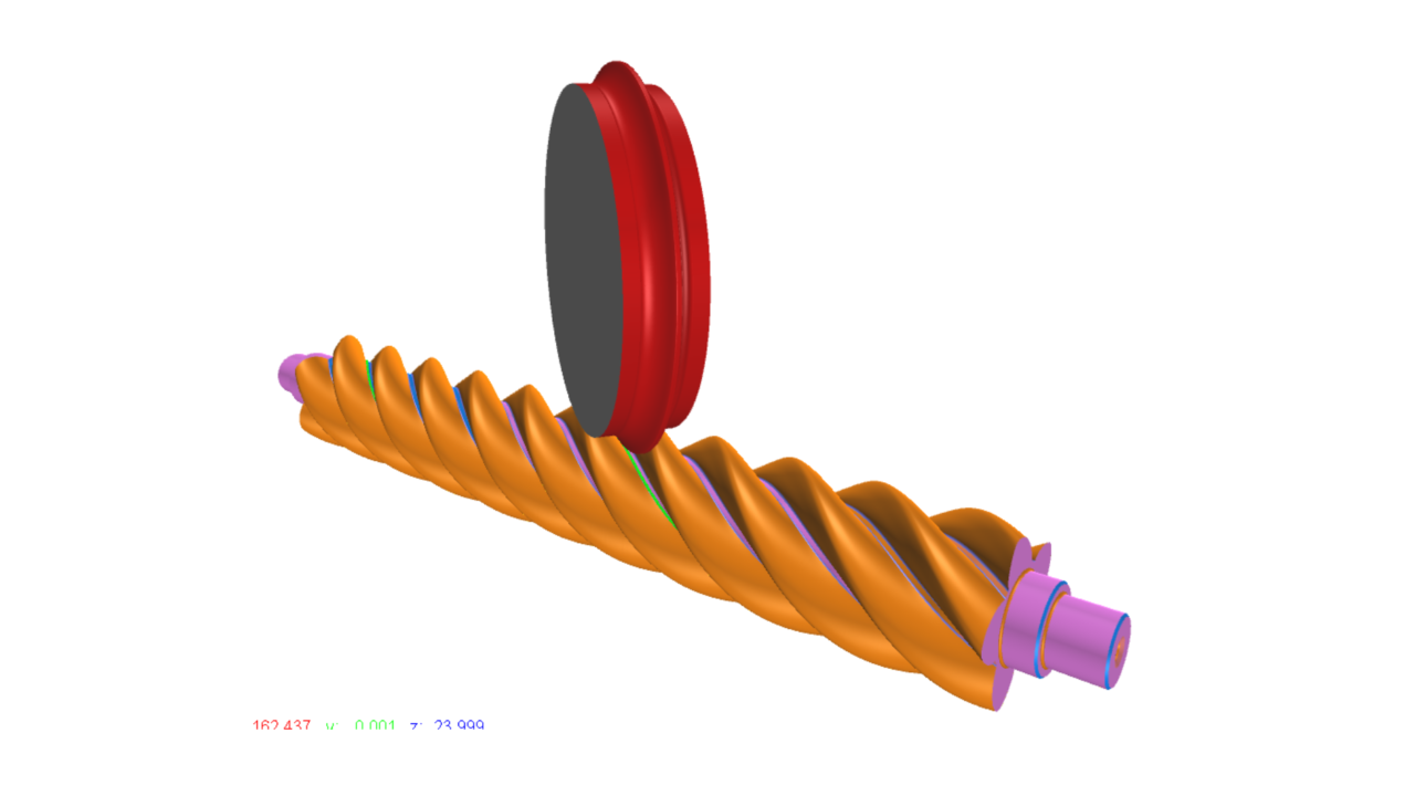- 使用Quinto Qg1 3D文件导入功能,修整成型砂轮,在Norma NGC750机床上磨削长度为440mm的精密压缩机螺杆零件。